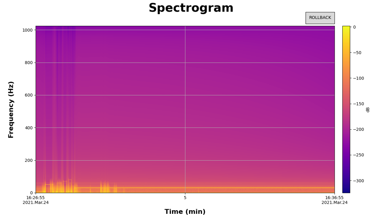 ※ 스펙트로그램의 x축의 시작 부분이 공백으로 나오는 현상이 경우에 따라 발생하지만 데이터 무결성은 유지됩니다. (공백 공간을 무시하고 처음 그래프가 Plotting 되는 위치를 영점으로 간주하면 됨)